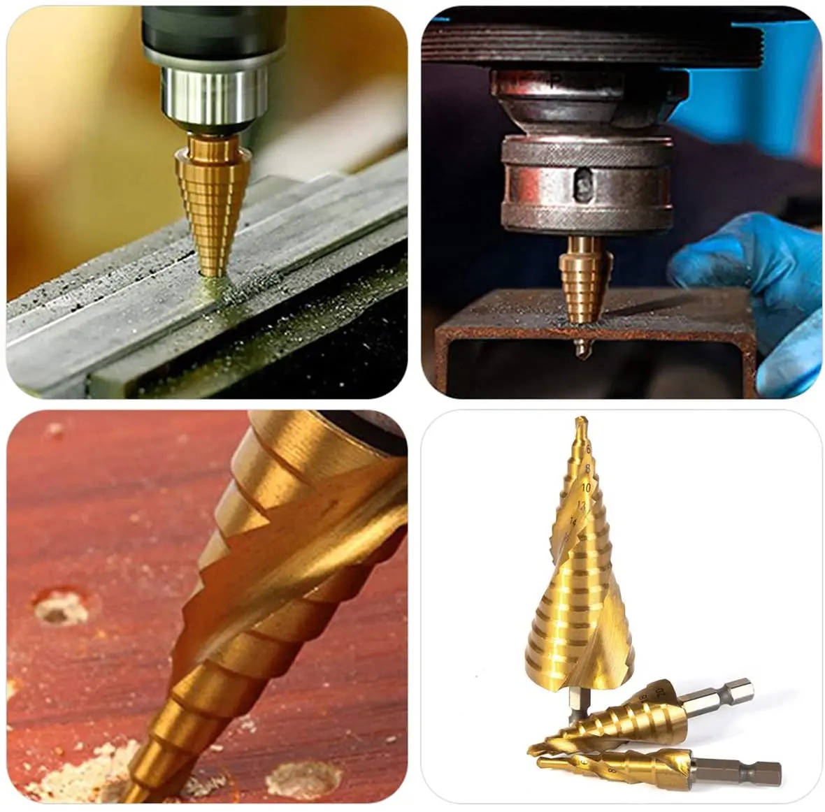 Titanium Coating - High speed steel along with titanium coating ensures outstanding durability and sharpness, can reduces the friction, runs cooler. Meet Your Demands - With the step drill bits we offered, you can process different kinds of diameter holes, which greatly saves you a lot of trouble.Great for metal/wood/plastic countersunk. Suitable for Home DIY, and General Building/Engineering Use. Design - The split point tip is at 118 degrees to increase the wear resistance. The two flute design provides a smoother cutting, allows the material particles escape easily for a much more clean drilling operation. Easy Organizing - A drill bits holder with size index is included in the metal kit for easy storage and organizing without fear of it falling out.