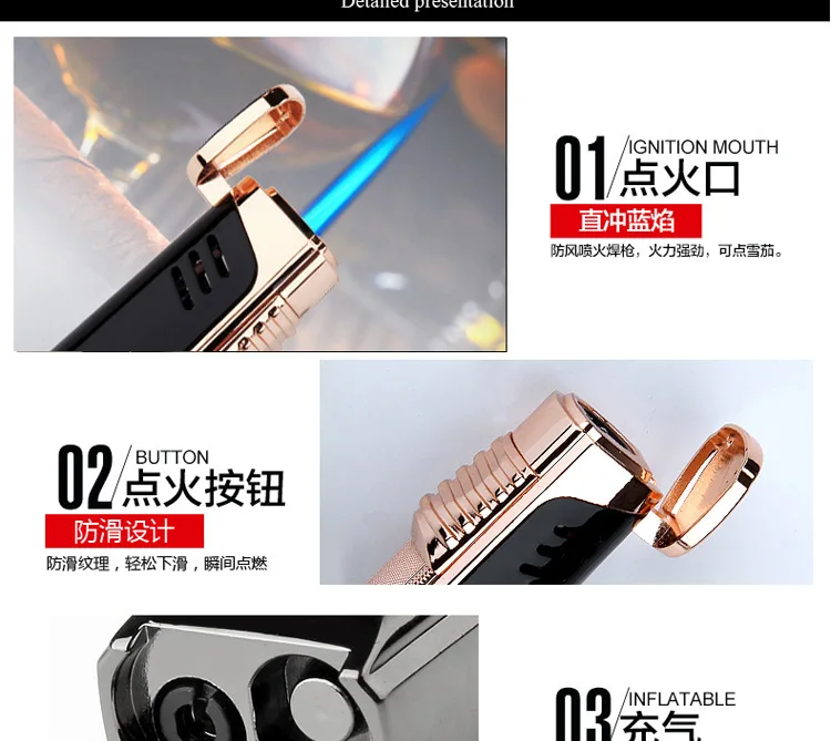Jobon металлический тройной фонарь, зажигалка для газового окна 1 & 3 Jet Gas Cigar Three Turbo Windproof мощный распылитель, кухонная Трубная зажигалка