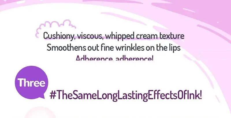 Бархатная текстура мягко и плавно распространяется на губы. Бесшовное нанесение с стойкой пудрой, похожей на чернила, без комков. Сделайте ваши губы привлекательными с помощью очаровательных оттенков. Как использовать: Возьмите необходимое количество и аккуратно нанесите на губы.