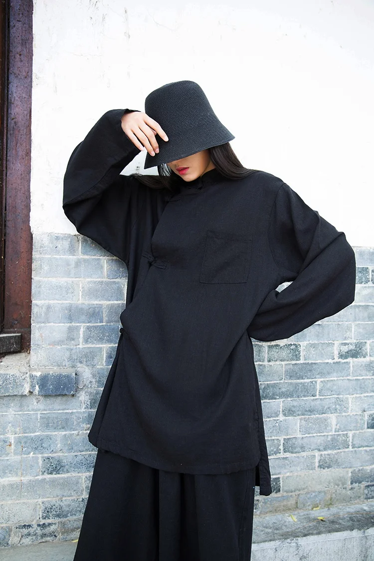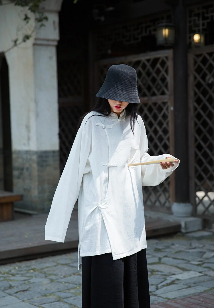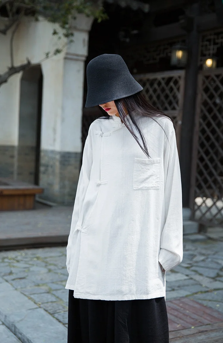 Винтажная рубашка с длинным рукавом в китайском стиле