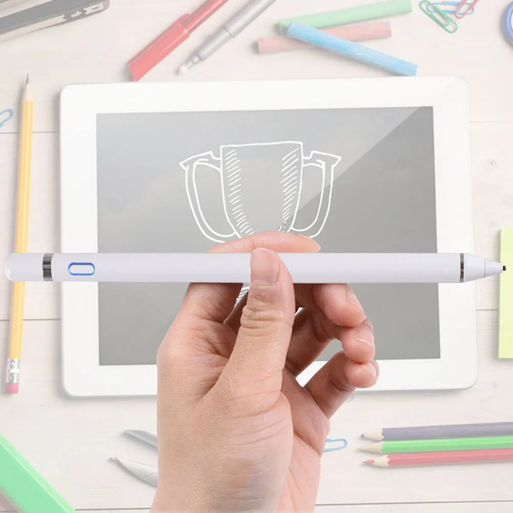 2. Стилус для сенсорных устройств, подходит для iPad 2018/ Pro/ Mini/ Air, iPhone XS/XS Mi MAX/ XR/IPhone X/ 8/ 8 plus/ 7/ 7 plus/ 6S/ 6 plus, Samsung, Dell, LG, Huawei и других самых Популярные планшеты, смартфоны 3. При отказе от товара мы комплект 30 минутах функция автоматического отключения питания в бездействия стилуса. В Порт Micro-charge от active stylus, с литиевой батареей внутри, может быть непрерывно Используется около 8-10 часов 4. Одна кнопка запускает цифровую ручку, не требуется подключение по USB или Bluetooth. Спецификация: Время зарядки: 1 час Время работы: 8-10 часов Совместимость использование: для телефонов Android, для Телефоны Apple, все бренды плоских емкостных экранных устройств Материал: корпус ручки Алюминий (наконечник ручки из чистой меди, наконечник ручки с защитной пленкой не повреждает экран) Эффективное расстояние: 1,6 мм из-под пера Время работы: 8-10 часов Стандартный аксессуары: USB Зарядное устройство характеристики батареи: 0.518wh 3,7 v 140mah Цвет: черный/белый Размер: 9 мм * 175 мм Светильник: Нажмите кнопку один раз, светодиодный синий светильник включен, вы можете использовать его; Нажмите Кнопка снова, выключите светильник, светодиодный светильник выключается; Светодиодный красный светильник включается при зарядке, Светильник выключен или зеленый светильник включен, когда аккумулятор полностью заряжен Посылка: 1 * стилус 1 * usb-кабель Mirco Примечание: 1. Все изображения профессионально кодируются, но из-за различий в освещении светильник Различные настройки устройства дисплея, могут быть некоторые отклонения между изображениями, которые вы видите И сами товары. Пожалуйста, поймите. 2. Данные измеряются вручную, могут быть некоторые отклонения, но это не влияет на Использовать.Характеристика:
