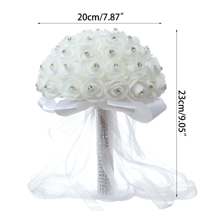 Корейский стиль Свадьба Искусственный букет невесты цветок ПЭ Пена розы с искусственным кристаллом ленты со стразами для вечерние декор с церковью