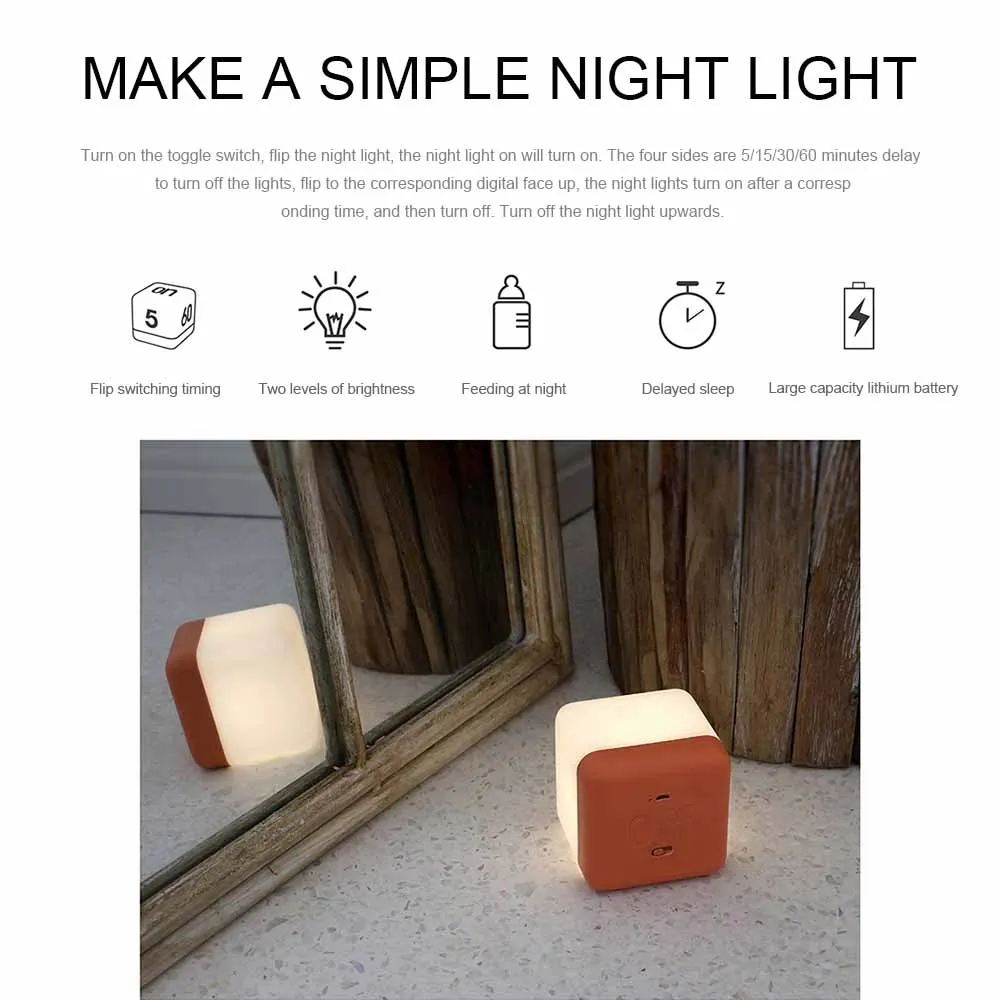 Функция flip timing lamp включает в себя функцию переключения времени, с 5 минут, 15 минут, 30 минут и 60 минут синхронизации, чтобы вы могли выбрать, удушав ваши различные потребности в использовании, не нужно искать светильник в темноте. Два режима яркости