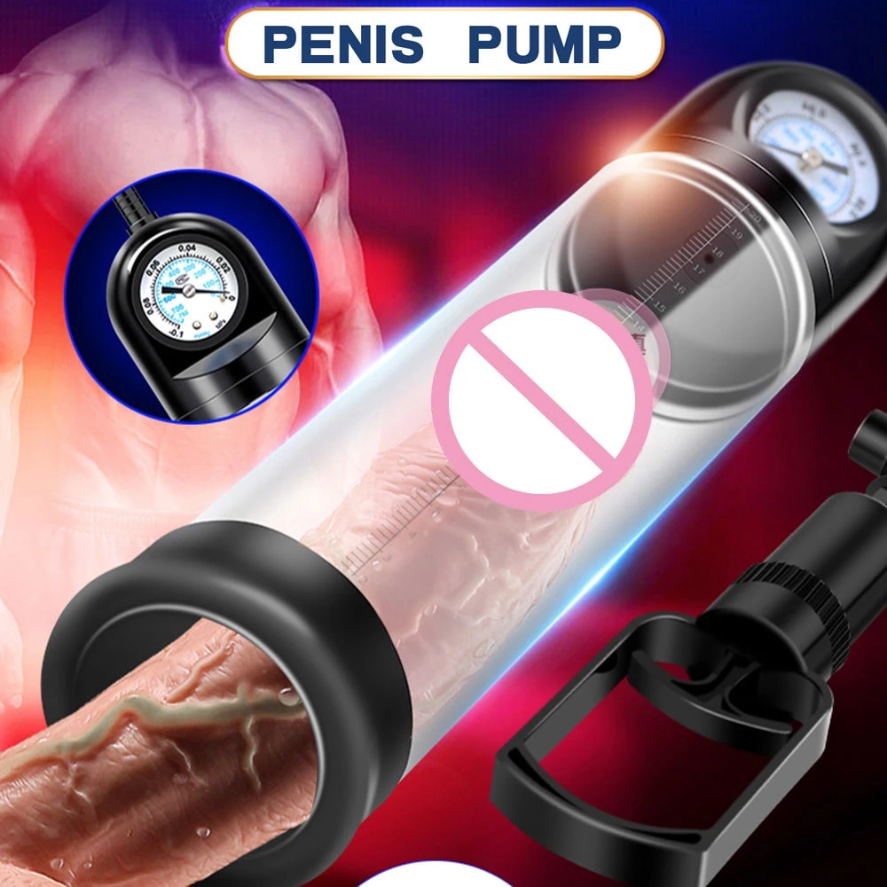 Взрослые секс-игрушки Мужской пенис увеличитель вакуумный насос с манометром для пениса Увеличитель роста увеличение размера и силы