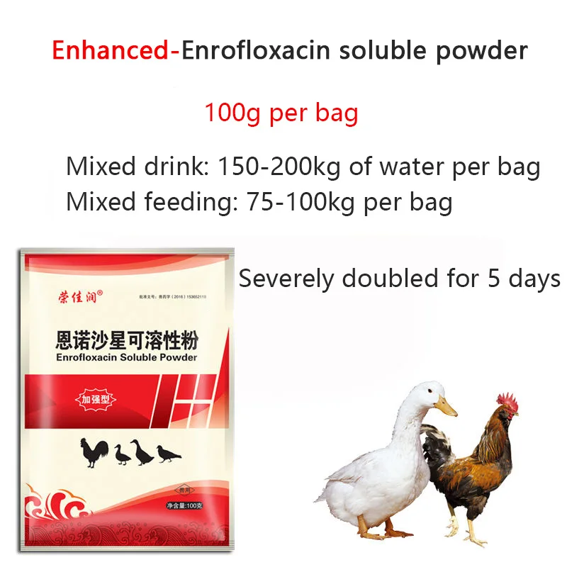 Ветеринарный лекарственный растворимый порошок энрофлоксацина, 100 г, куриная медицина, диарея, специальный эффект, респираторный кашель, храп Enhanced-растворимый порошок энрофлоксацина 100 г в пакете Смешанный напиток: 150-200 кг воды в пакете Смешанная подача: 75-100 кг в пакете Сильно удваивается в течение 5 дней