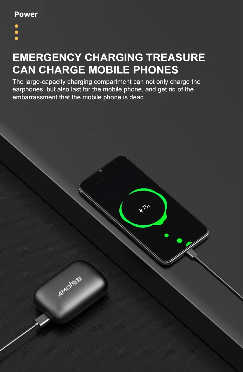 2, 2200mAh charging case can full charge 2 earphones around 15 times, offer more music time.