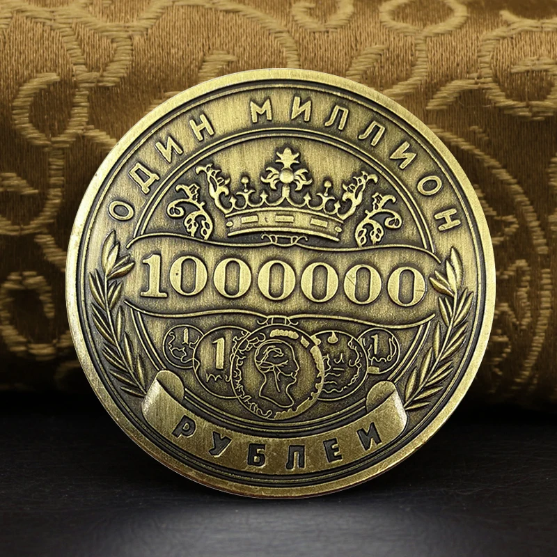 Это копия памятной монеты в 1 миллион рублей в России с двойной рельефной поверхностью.