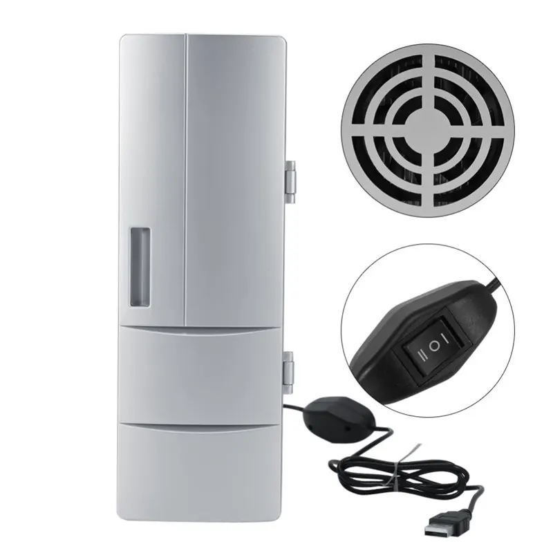 Этот мини-холодильник имеет стильный и крутой внешний вид, подходит для хранения консервированных напитков, пива, молока, напитков и т. д. Питание от USB-кабеля, подходит для всех ПК, автомобилей или других USB-интерфейсов, батарейки не требуются. Так что вы можете наслаждаться прохладными напитками в офисе или автомобиле в любое время, очень удобно и практично. Он также может служить подогревателем, дольше сохраняя горячие напитки в тепле.