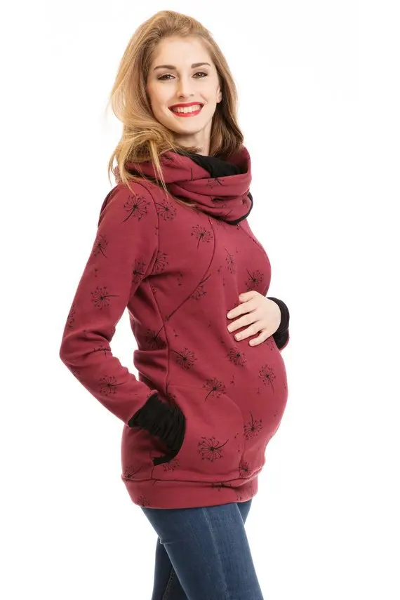 Толстовка для беременных Зимняя одежда Теплый кенгуру с высоким воротником
