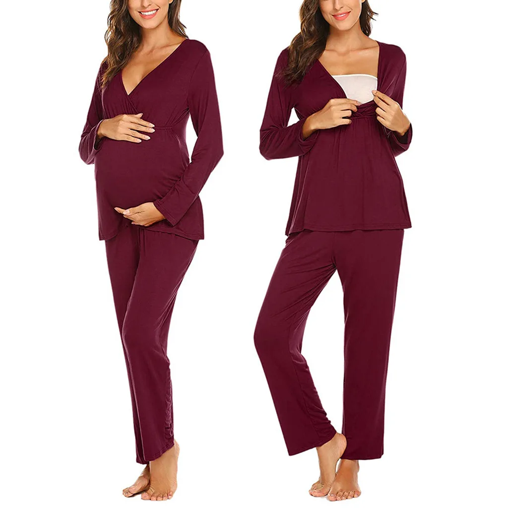 Fdfklak Модальная тонкая одежда для беременных на весну и осень Пижама с длинным