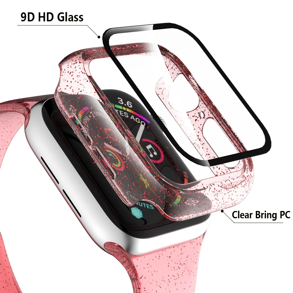 Закаленное стекло + чехол для Apple Watch 5 4 44 мм 40 мм iWatch 3 2 1 42 мм 38 мм защита экрана + чехол бампер аксессуары для apple watch