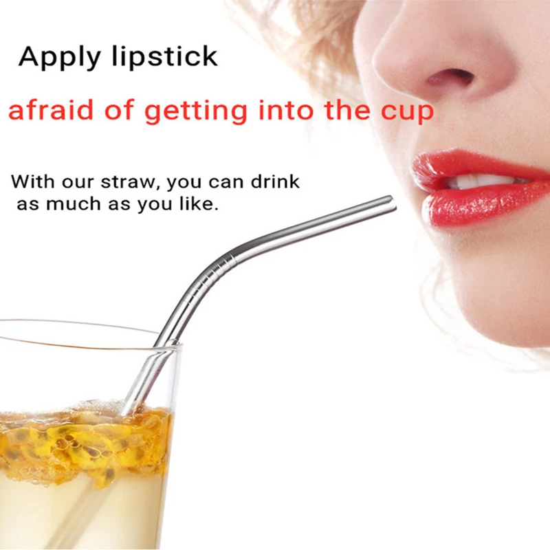 100 шт. металлические соломинки можно повторно использовать 304 трубы из нержавеющей стали для питьевой воды 215 мм x 6 мм изогнутые соломинки и 50 прямых соломинок