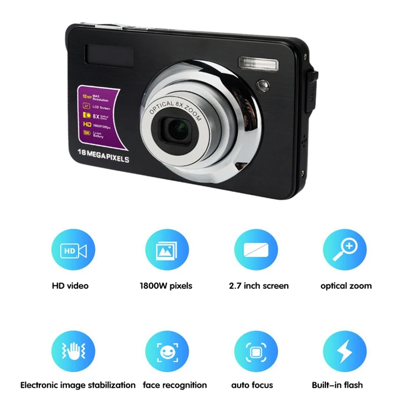 5,18 миллионов пикселей высокой четкости, 8 оптических зумов, съемка зумом и Легкая съемка удаленных сцен