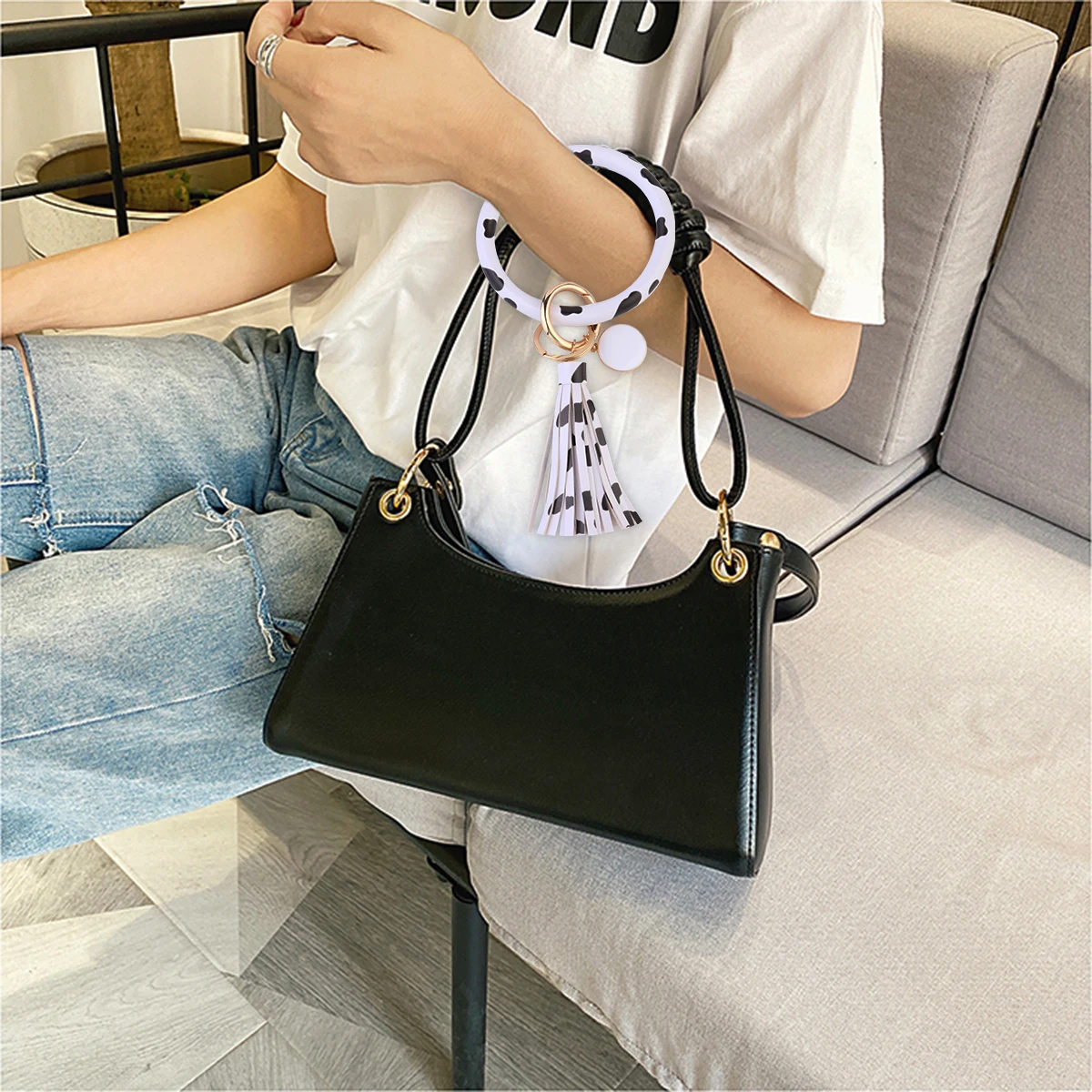 -Этот браслет для ключей выглядит очень просто, но его легче найти в вашем кошельке, его можно перемещать до локтя или выше.