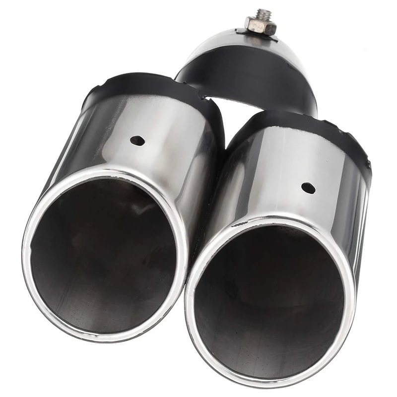 2Pcs Universal Car Decoration Chrome Tail Pipe Stainless Steel Curved Dual-Outlet Exhaust Trim Muffler Pipe Tail for BMW for Ben