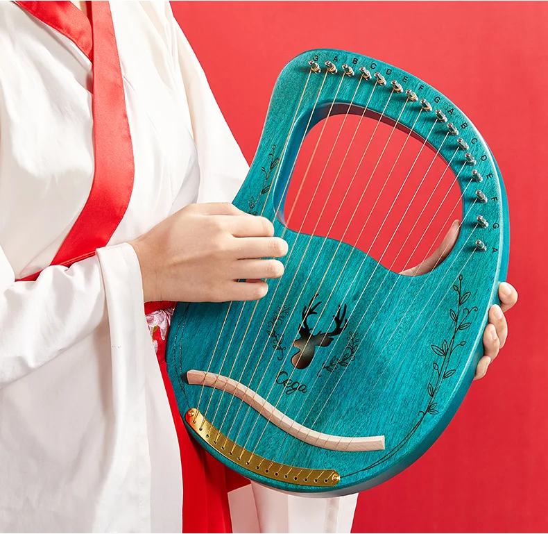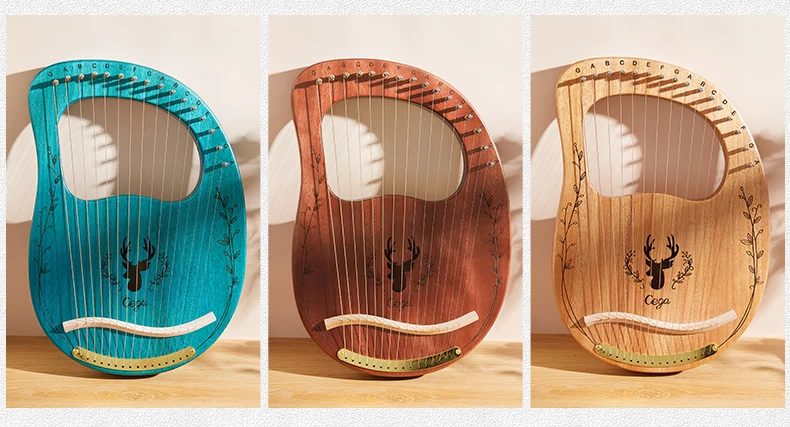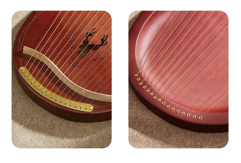 16 струн: 16 металлических струн lyre harp оснащены прочными стальными струнами. Этот тон звонит и может заполнять целую комнату. Чем короче струна, тем выше тон. Как и натяжение струн.