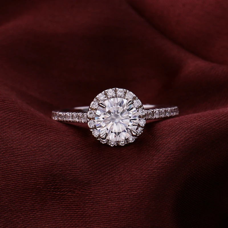 Обручальные кольца из стерлингового серебра 925 пробы 6,5 мм с круглой огранкой для помолвки и свадьбы, кольца с бриллиантами для женщин Halo, покрытые платиной 18 К золотом
