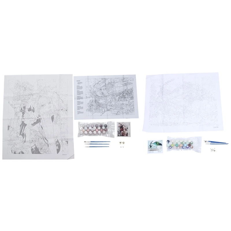Инструкция: пигментная коробка в пронумерованных пакетах соответствует цветовой таблице на стороне рисунка, поместите пигмент на соответствующий номер на холсте. В разделе описания товара есть инструкция по живописи, очень легко следовать. 3 размера высококачественные кисти для рисования, с использованием высококачественного безопасного пигмента