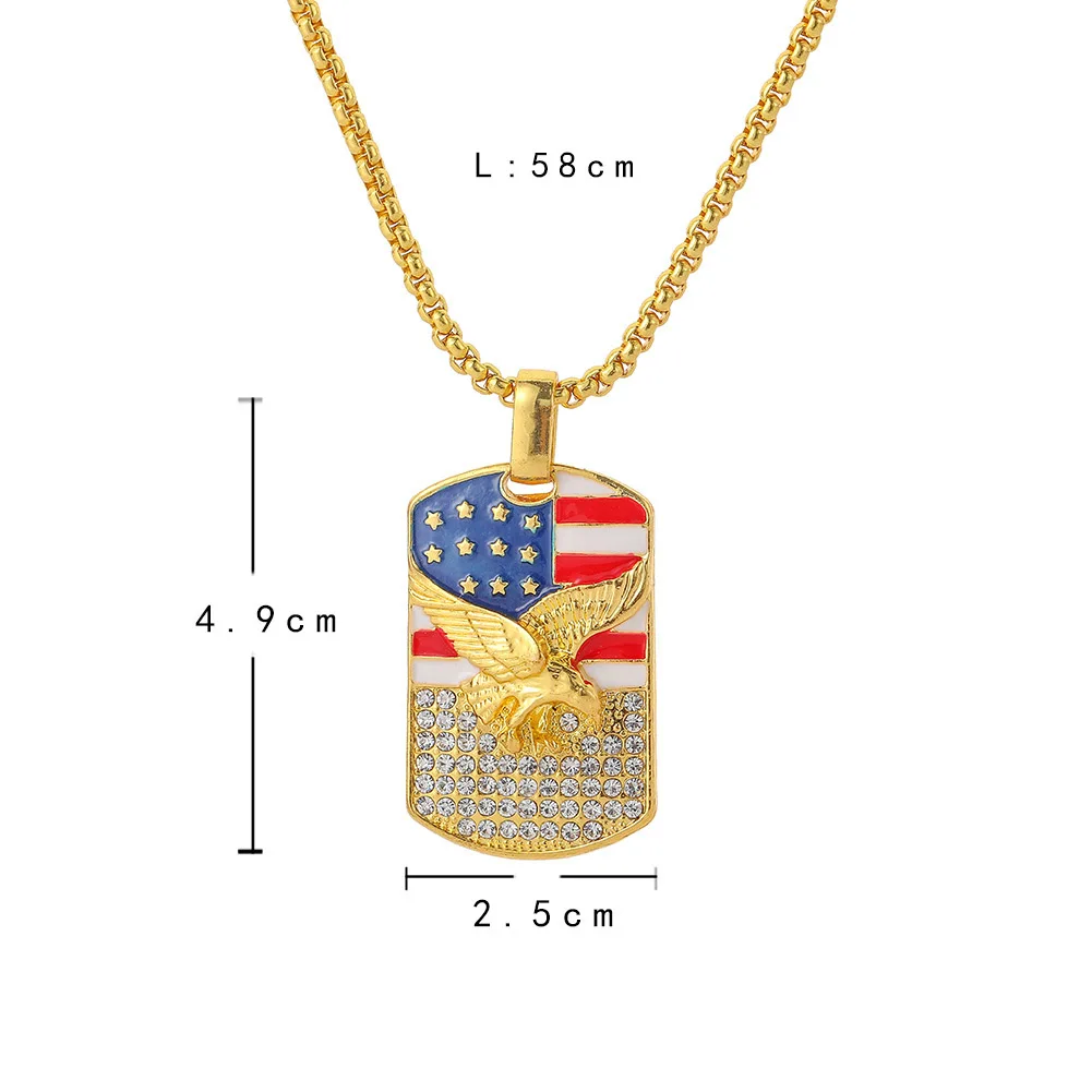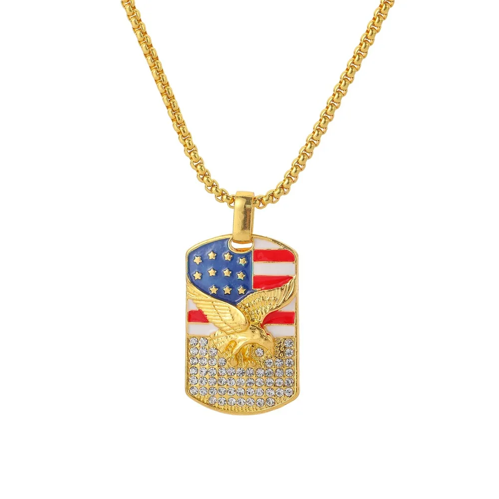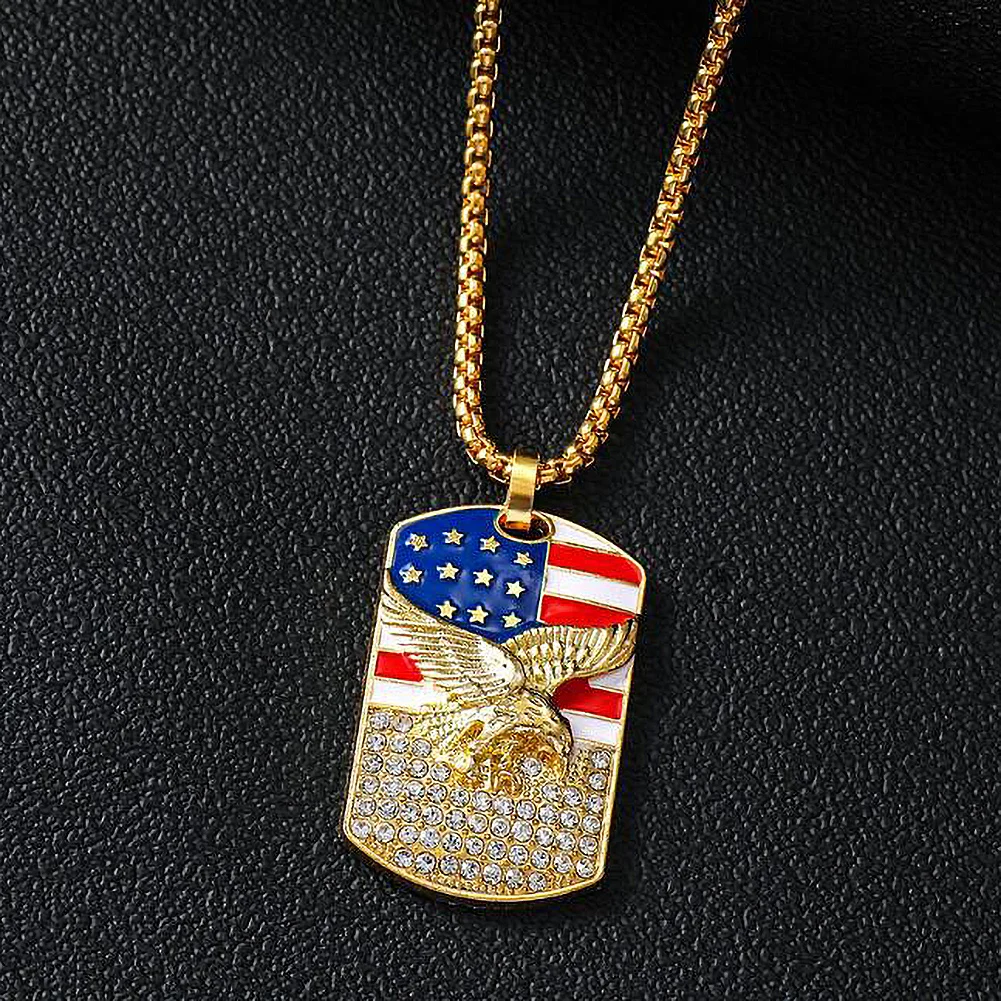 Унисекс Мода Американский Флаг Орел Стразы инкрустированные кулон цепочка ожерелье подарок