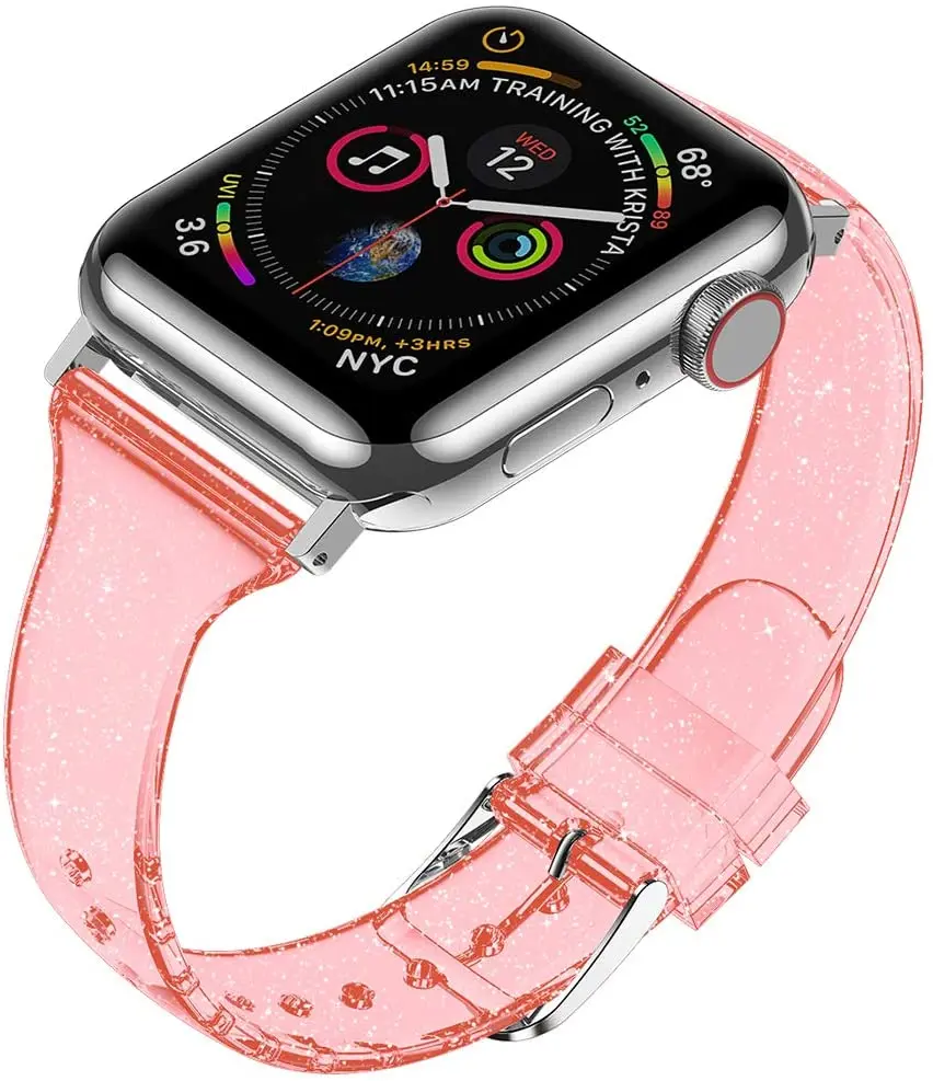 Информация о продукте 1: ремешок совместим с Apple Watch 5 4 3 2 1 2: Размеры: 38/40/42/44 мм 3: Материал: силикон 4: Цвет: зеленый/прозрачный/розовый/фиолетовый/черный/красный/ Примечание: 1: Эта ссылка предназначена только для замены ремня. Не включая Смарт-часы. Посылка включает в себя: 1x Ремешок для часов