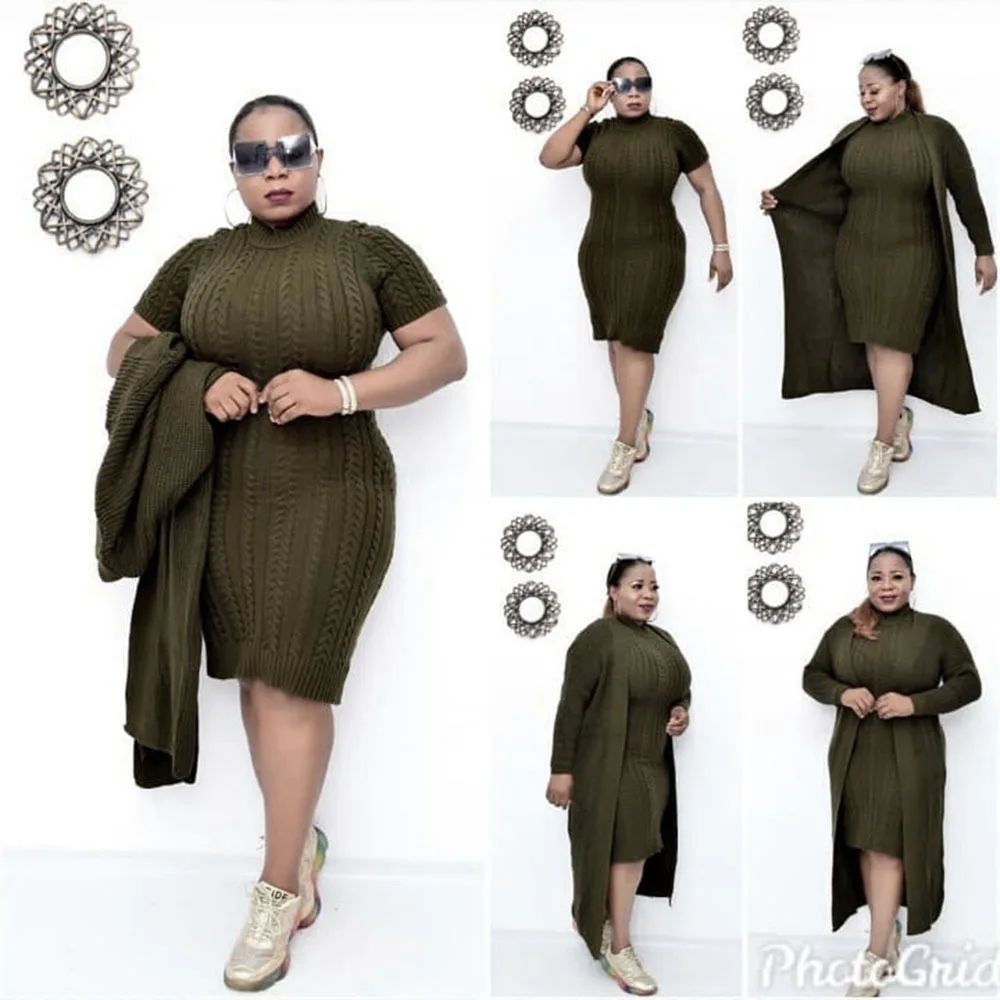 Горячая Распродажа, африканская одежда для женщин, высокое качество, ацетат, вязаное, тонкое, сексуальное, элегантное платье-свитер из двух частей, модное, свободный размер