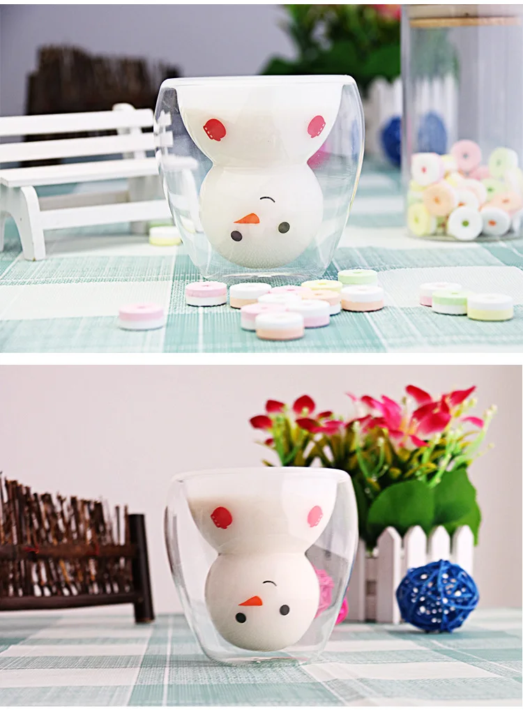 Характеристика: Материал: высококачественное стекло Емкость: 250 мл Размер снеговика 2: 150 мл, 250 мл Высота: 9 см Диаметр чашки: 8,5 см Снеговик 150 мл: 8.5x8x5.5см