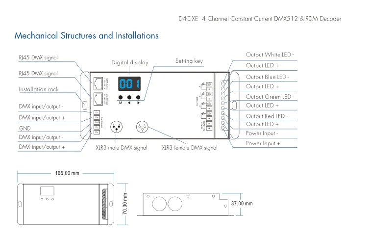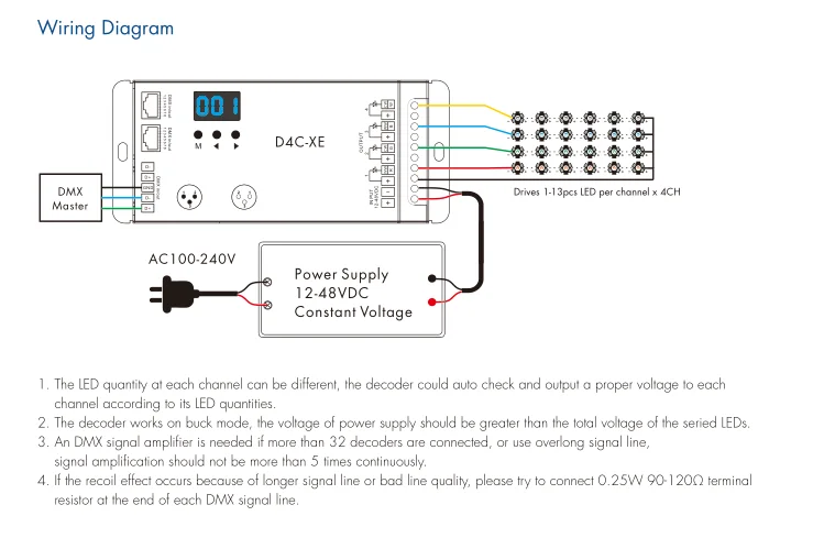 DC12-48V 24 в 36 В D4C-XE 700MA 900MA 1750MA 4CH постоянный ток CC DMX 512 и RDM RGB RGBW светодиодный декодер шим частота 2000/500 Гц