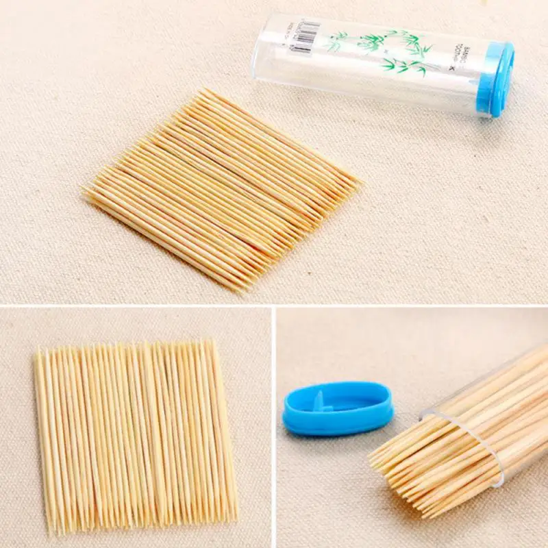 100Pcs/Box Disposable Wood Toothpick Disposable Double Sharp Natural Bamboo Toothpick Home Restaurant Hotel Product Random Color