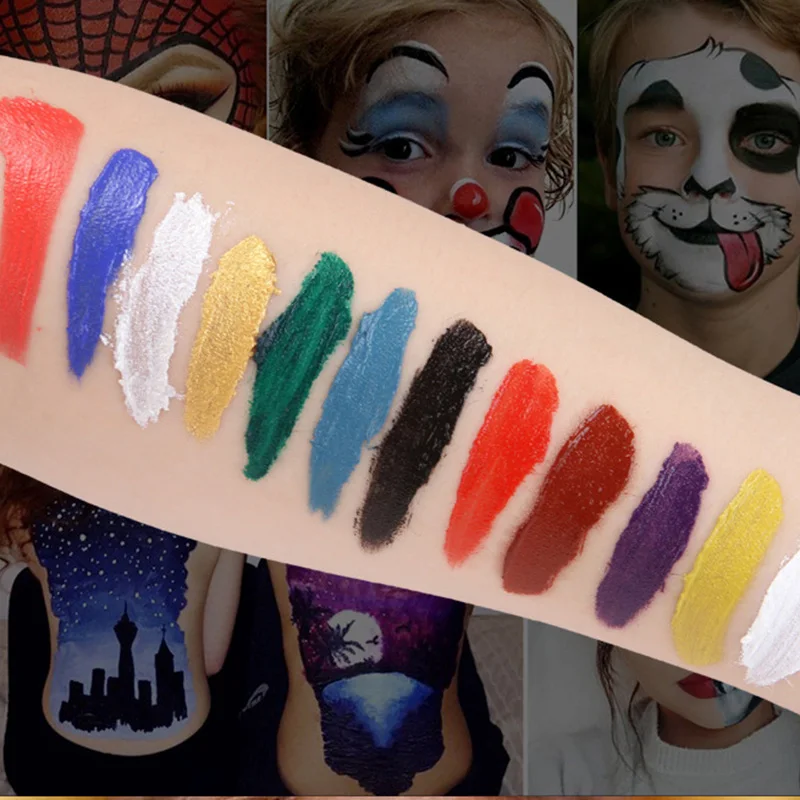 1.12 цветов краски для лица подходят для создания разных видов, удовлетворения потребностей различных случаев.