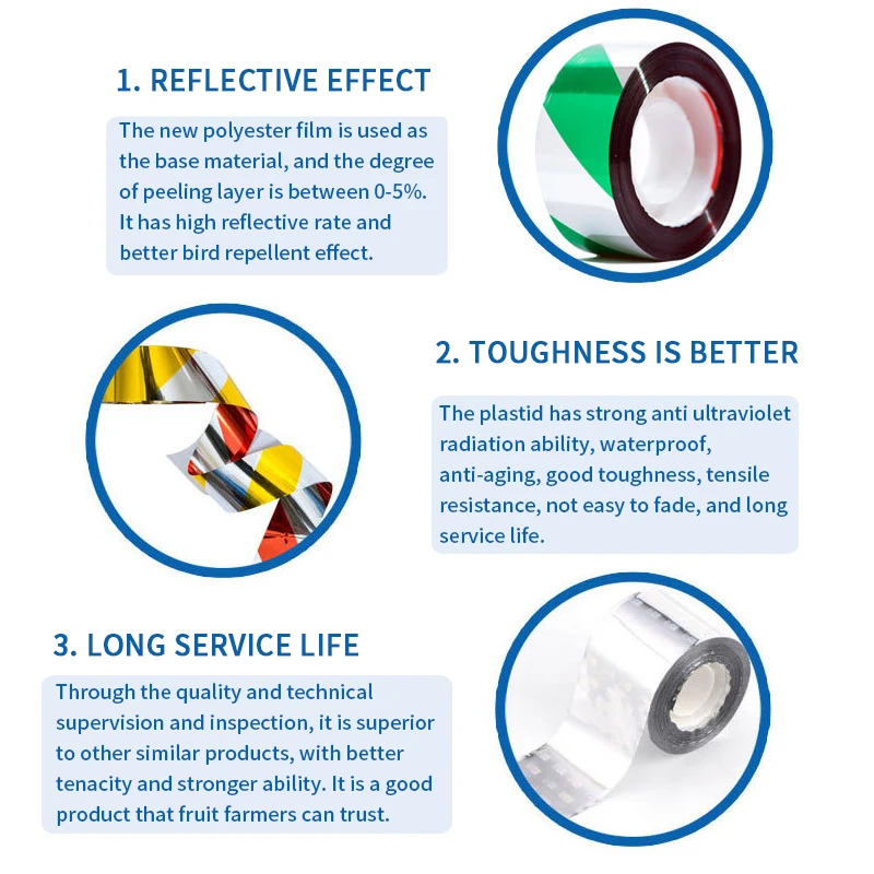 <Функция: светоотражающая лента для отпугивания обеспечивает мощное и чрезвычайно эффективное решение проблем с вредителями и птицами.