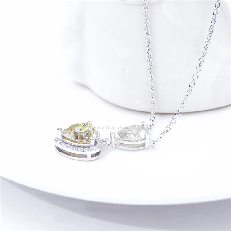 Tianyu драгоценные камни Moissanite ожерелье сердце белый/желтый груша бриллианты кулон ожерелье Стерлинговое серебро ювелирные изделия свадебный подарок для женщин Цепочка из стерлингового серебра, ожерелье сердце/груша, ожерелье из моиссанита, лучшие бриллиантовые Свадебные ювелирные изделия для нее Тип Драгоценного Камня: Moissanite diamond Размер драгоценного камня: 6*8 мм/8*8 мм Вес драгоценного камня (ct):3.25ct/0.12ct Твердость: 9,25 могц Огонь (разочарование): 0,104 Цвет металла: покрытый белым золотом Четкость: VS Форма: Сердце/груша