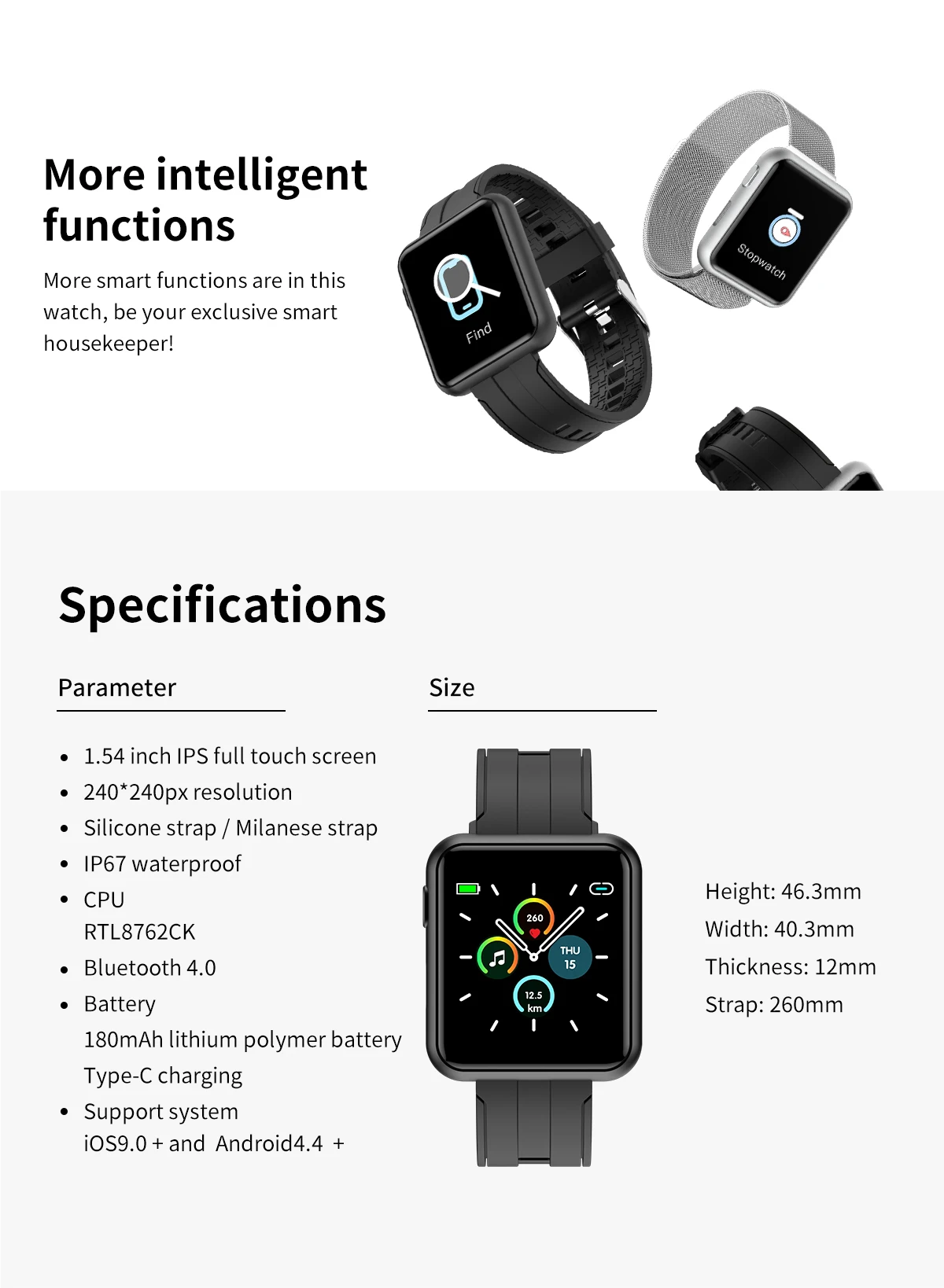 Процессор RTL8762CK Версия Bluetooth часы BLE 5,0 наушники BLE 4,0 Цветной дисплей TFT Разрешение 1,54 дюйма 240*240 Датчик силы тяжести с 3 Осями ускорения Пульсометр VC51 ультра-низкое энергопотребление динамический датчик сердечного ритма в реальном времени MP3 ATJ2127 Поддержка аудио форматов WMA, AEP, MP3, WAV, FLAC, ACC, MA4, OGG поддерживает эти 8 форматов. Флэш-память 128 м Батарея: полимерная перезаряжаемая литиевая батарея 180ма Мотор встроенный Полный дисплей библиотеки шрифта Зарядный usb-адаптер 5 в TYPE-C Водонепроницаемый класс IP67 Подходит для окружности запястья 140-215 мм Клавишный сенсорный экран, физические клавиши Время работы в режиме ожидания: 7 дней Совместимость с приложением языки китайский упрощенный, традиционный, английский, испанский, корейский, португальский, арабский, итальянский, русский, индонезийский, чешский, французский, польский, немецкий многоязычный Mflash PFB29 (локальное хранилище) 8 Гб Обнаружение частоты сердечных сокращений в реальном времени, обнаружение частоты сердечных сокращений, сигнализация сердечного ритма Несколько видов спорта: бег, скакалка, езда на велосипеде, плавание, настольный теннис, бадминтон, теннис и т. д.