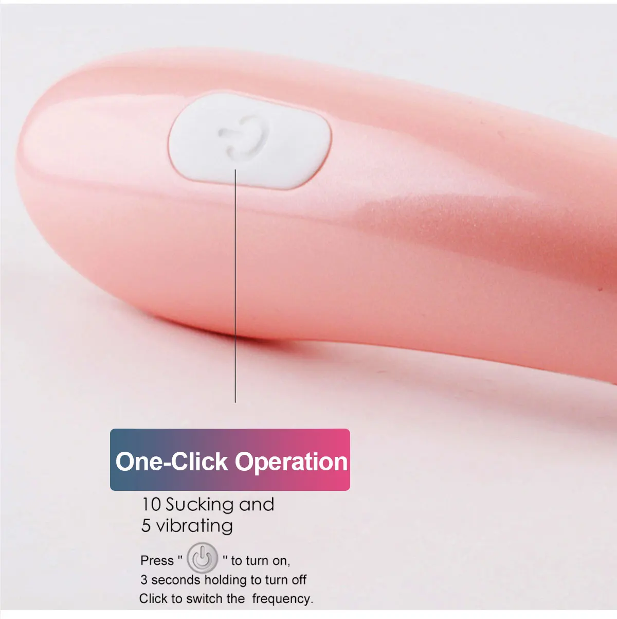 10 сосание и 5 вибраций. Нажмите «〇» для включения. 3 секунды для выключения. Нажмите для изменения частоты.