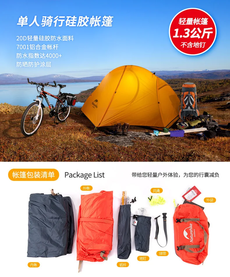 Одноместная велосипедная палатка двухэтажная профессиональная туристическая уличная палатка для 1 человека, легкая защита от ливневого дождя