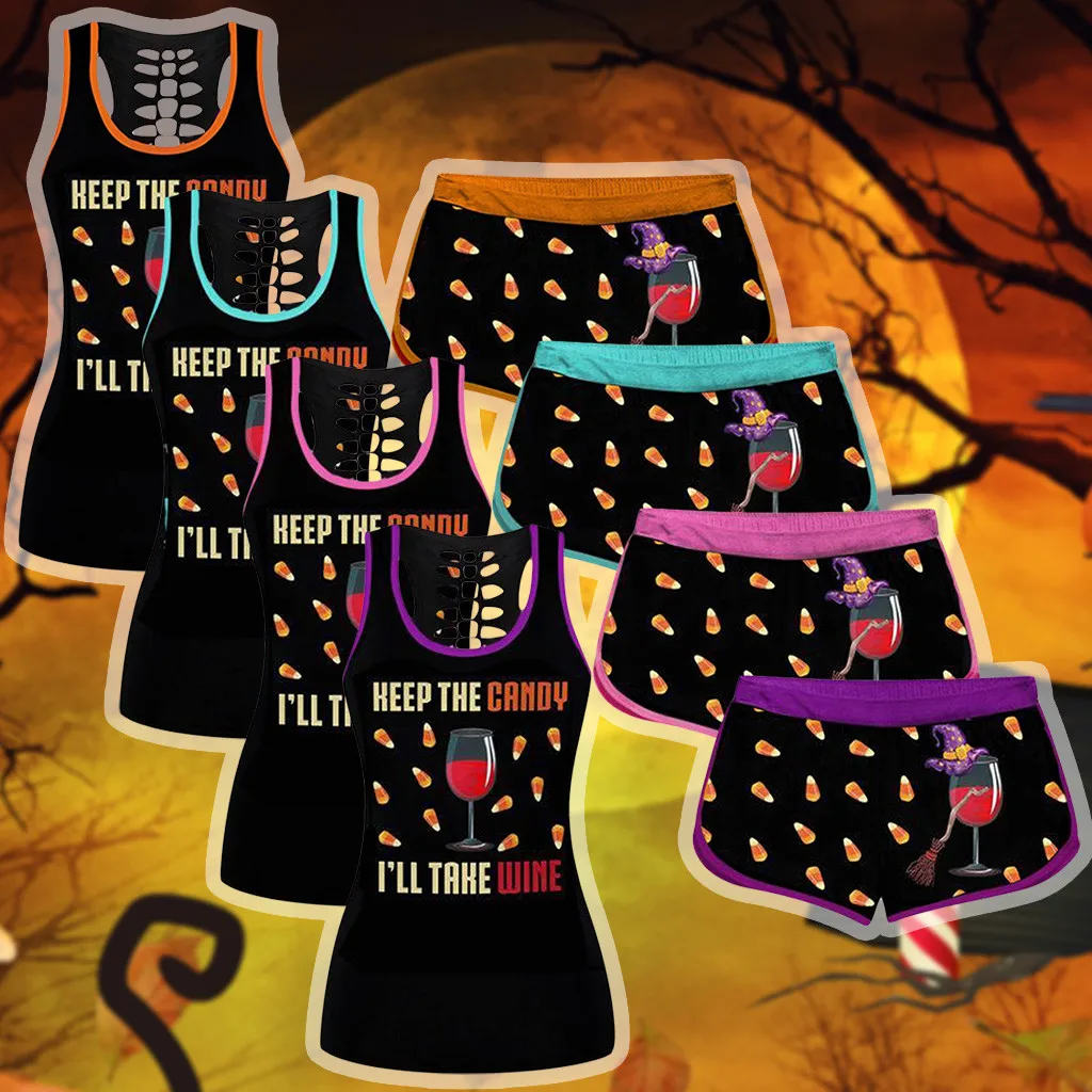 Женский комплект с футболкой с короткими рукавами и принтом; Комплект с шортами на завязках на Хэллоуин