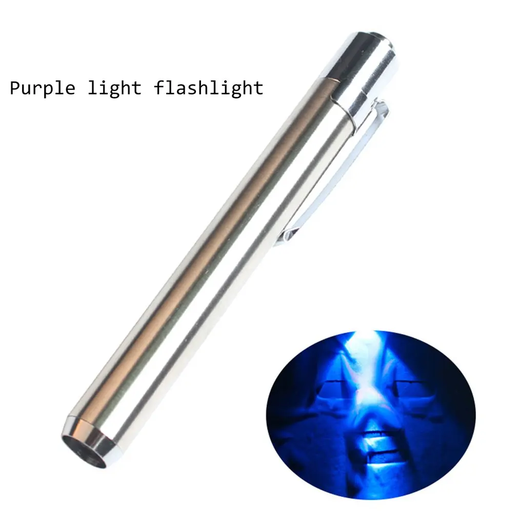 1 шт. Мини Портативный из нержавеющей стали светодиодный светильник вспышка на батарейках УФ ручка-фонарик светильник лампа 365nm Детектор Валюты ручка Продажа