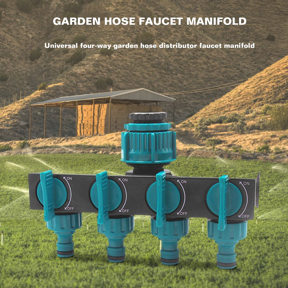 1. Четырехходовой сплиттер преобразует один кран в четыре шланга, чтобы легко контролировать поток воды. Идеально подходит для использования в помещениях и уличных садах.