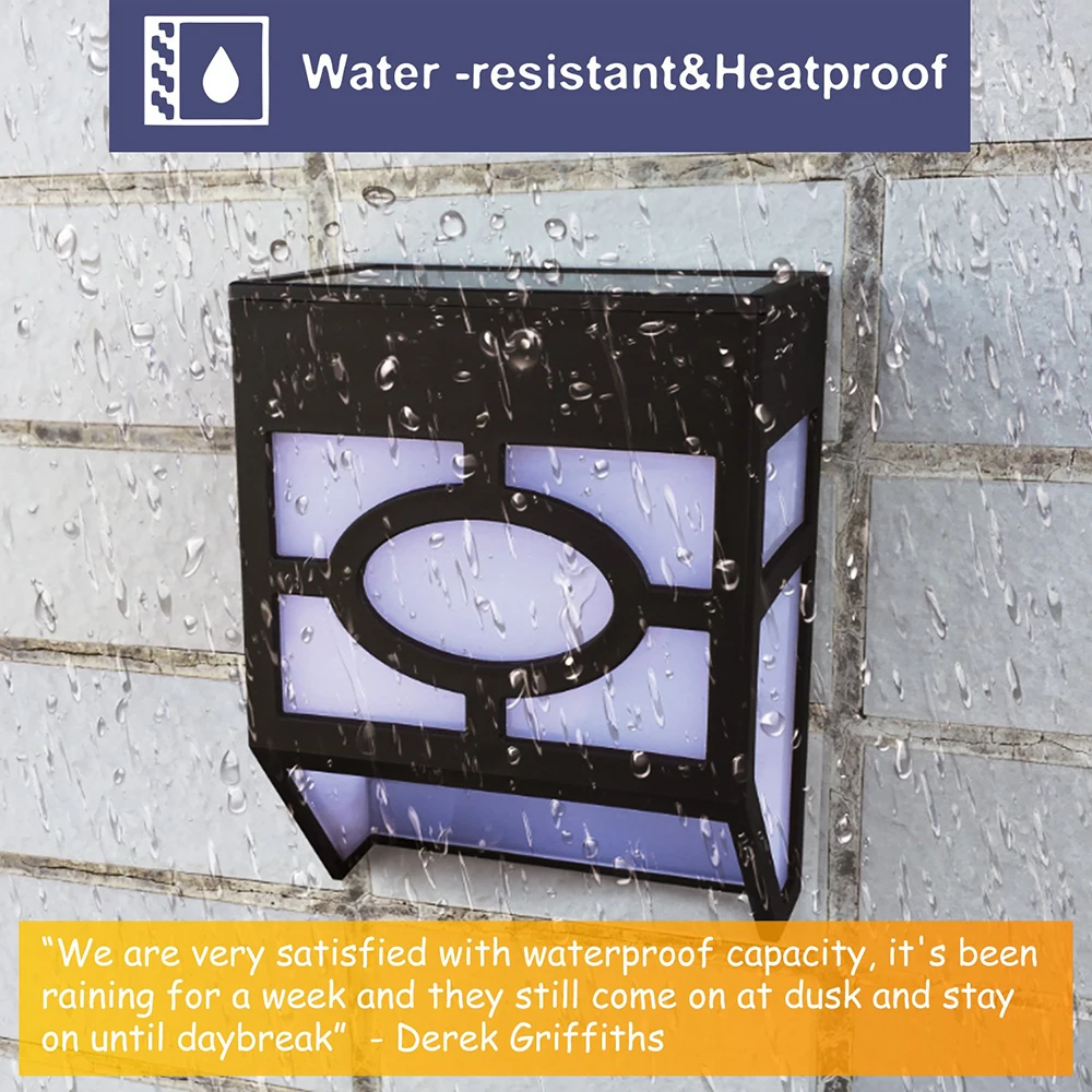 Настенный светильник на солнечной батарее изготовлен из высококачественного АБС-материала, который устойчив к атмосферным воздействиям и долговечен, благодаря чему солнечный светильник хорошо работает и безопасен в различных погодных условиях. И полностью заряжает аккумулятор в течение 6 часов, он может поддерживать освещение в течение 8 часов.