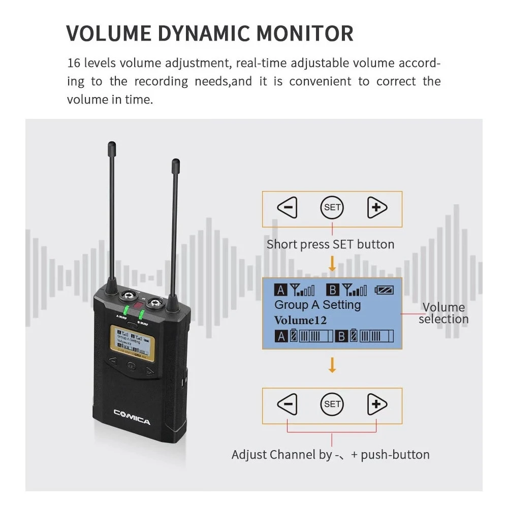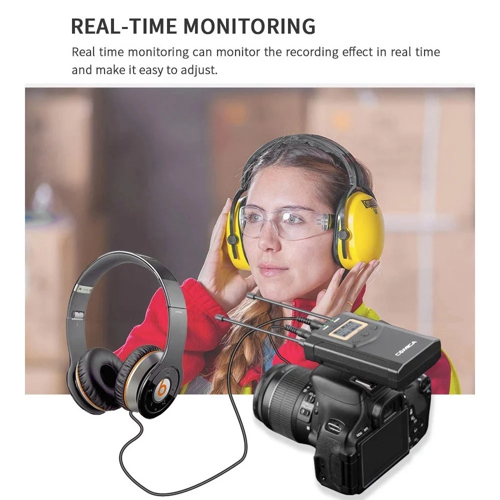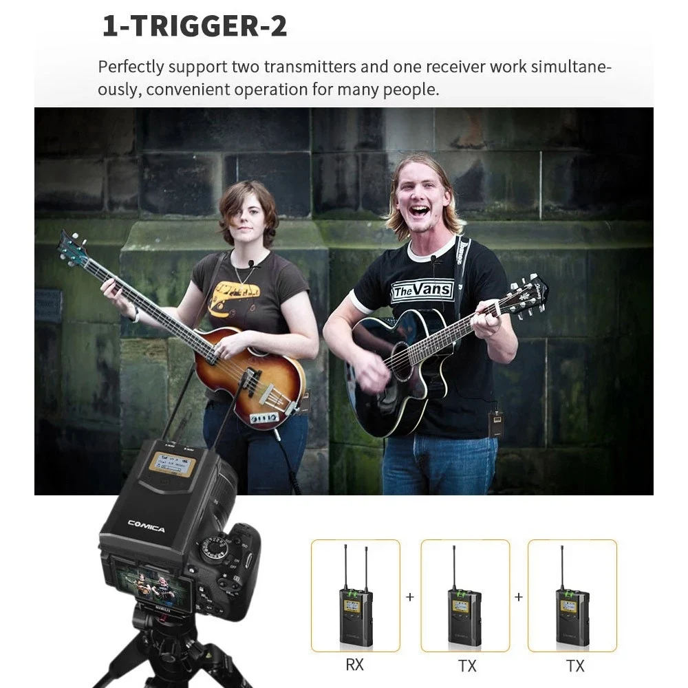 CoMica CVM-WM100 PLUS UHF 48-Channel Wireless Dual Lavalier Microphone System for Canon Nikon Sony Panasonic DSLR Camera