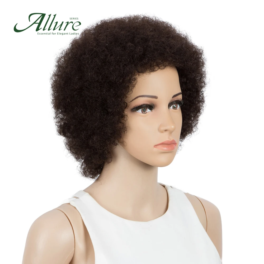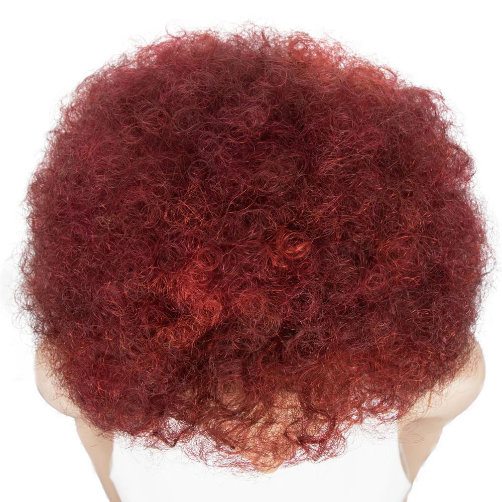 Короткие афро пушистые человеческие волосы парик коричневый цвет афро кудрявый парик