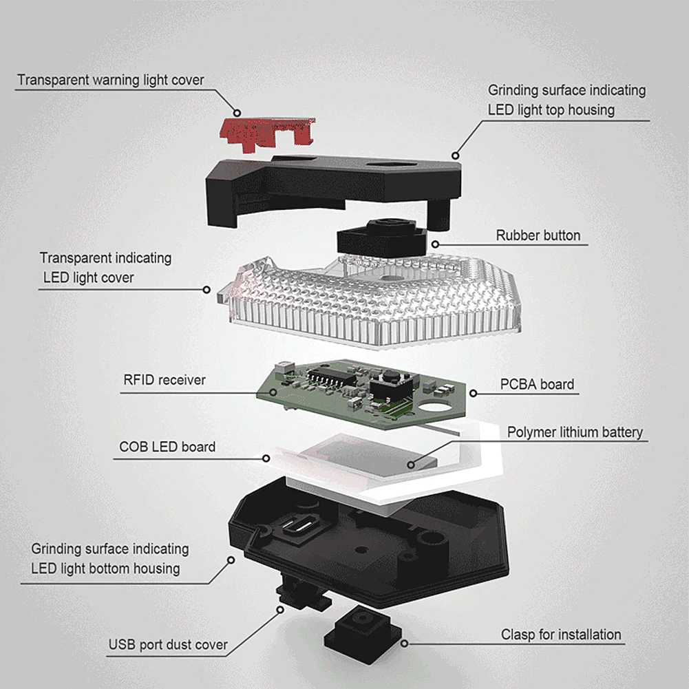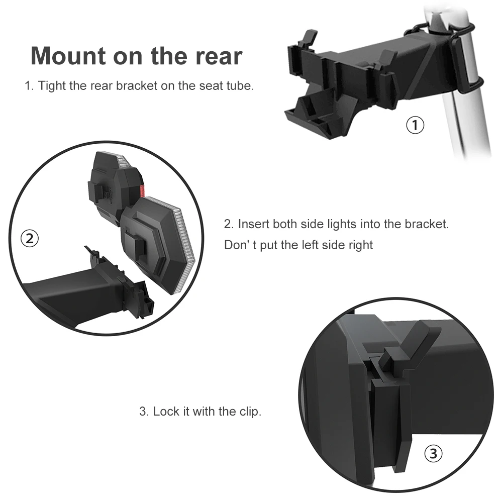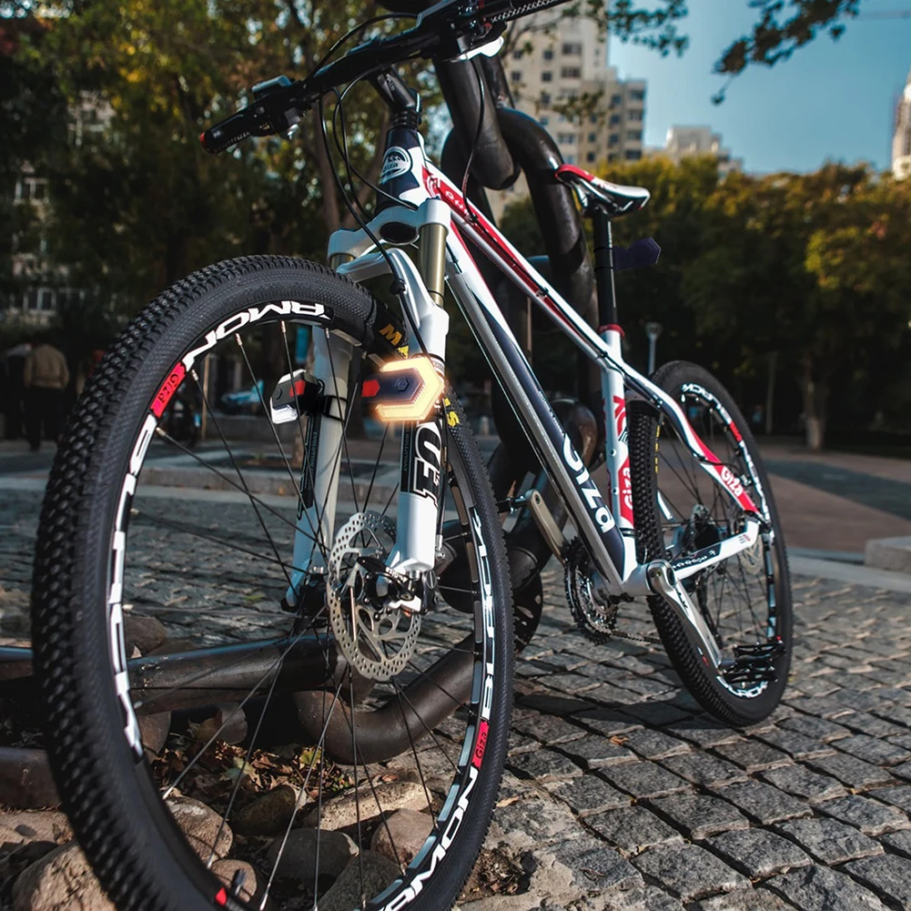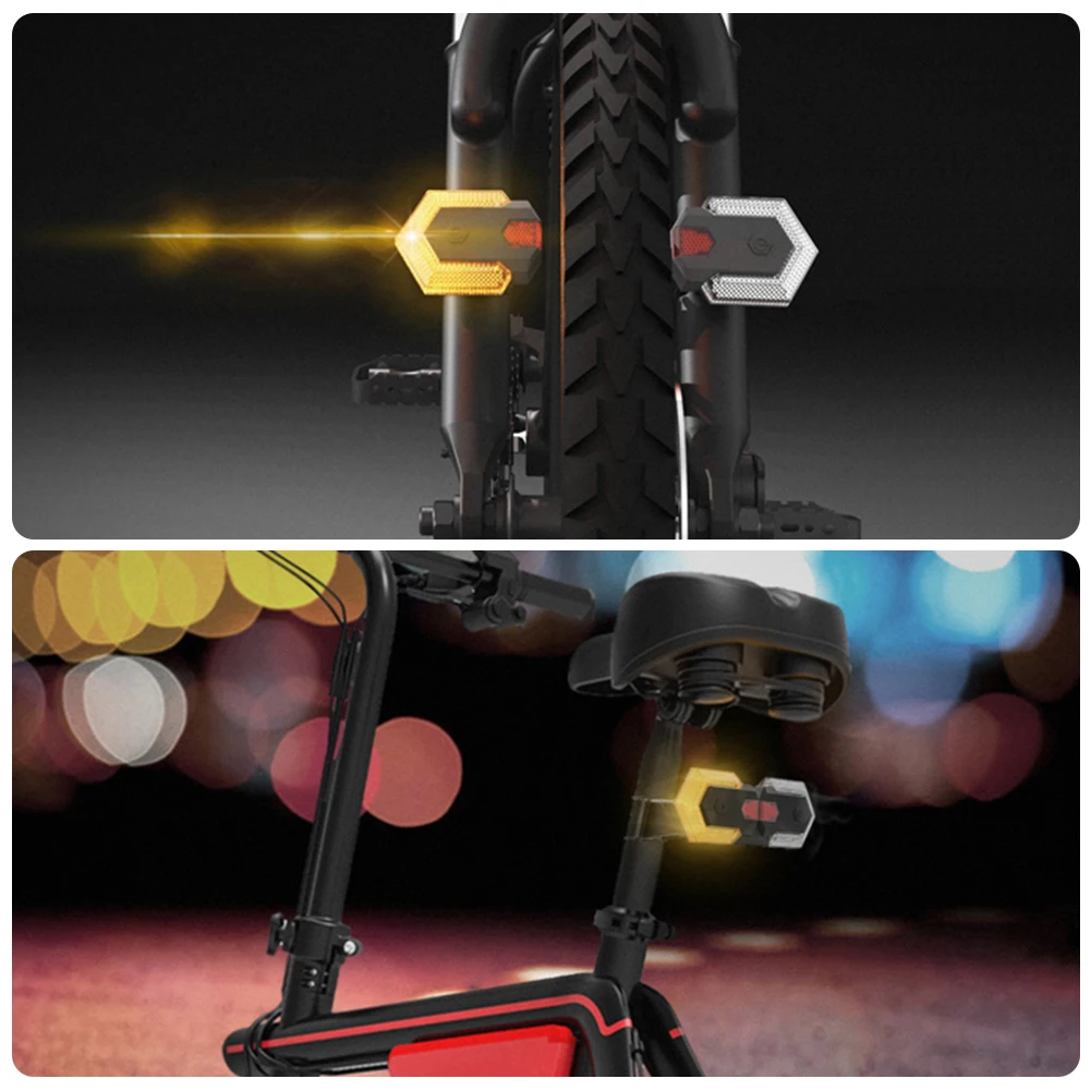 * 3. Вместе с умным пультом дистанционного управления, легко контролировать правый/левый сигнал поворота, аварийный светильник и оповещение, обеспечивают большую безопасность велосипедиста в ночное время или в дождливый день.