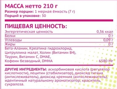Способ употребления: За 30 мин до тренировки или активной деятельности насыпать 1 мерную ложку в стакан с 250-300 мл воды и размешать. Продукт не является лекарственным средством Не рекомендуем использовать продукцию лицам, не достигшим 18 лет. Перед началом приема любого продукта обязательно проконсультируйтесь у специалиста!
