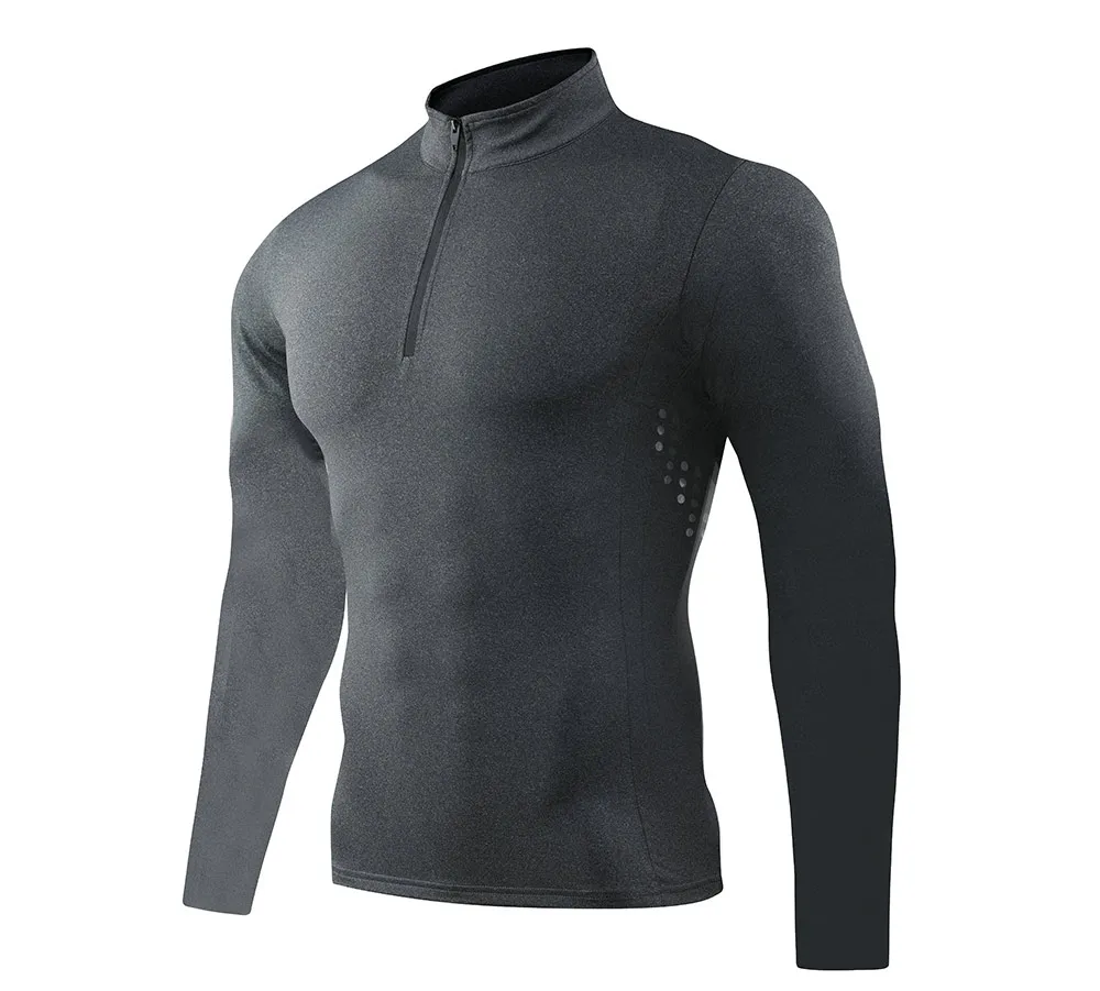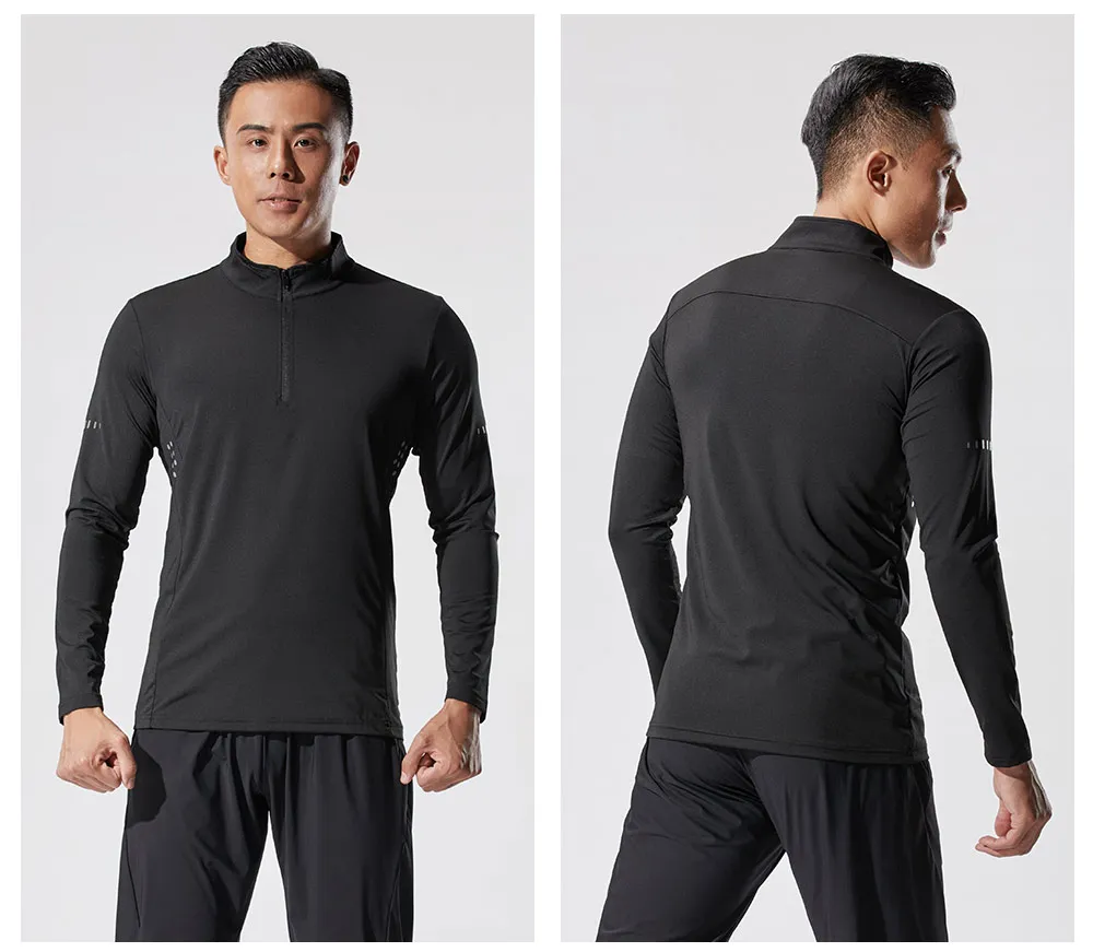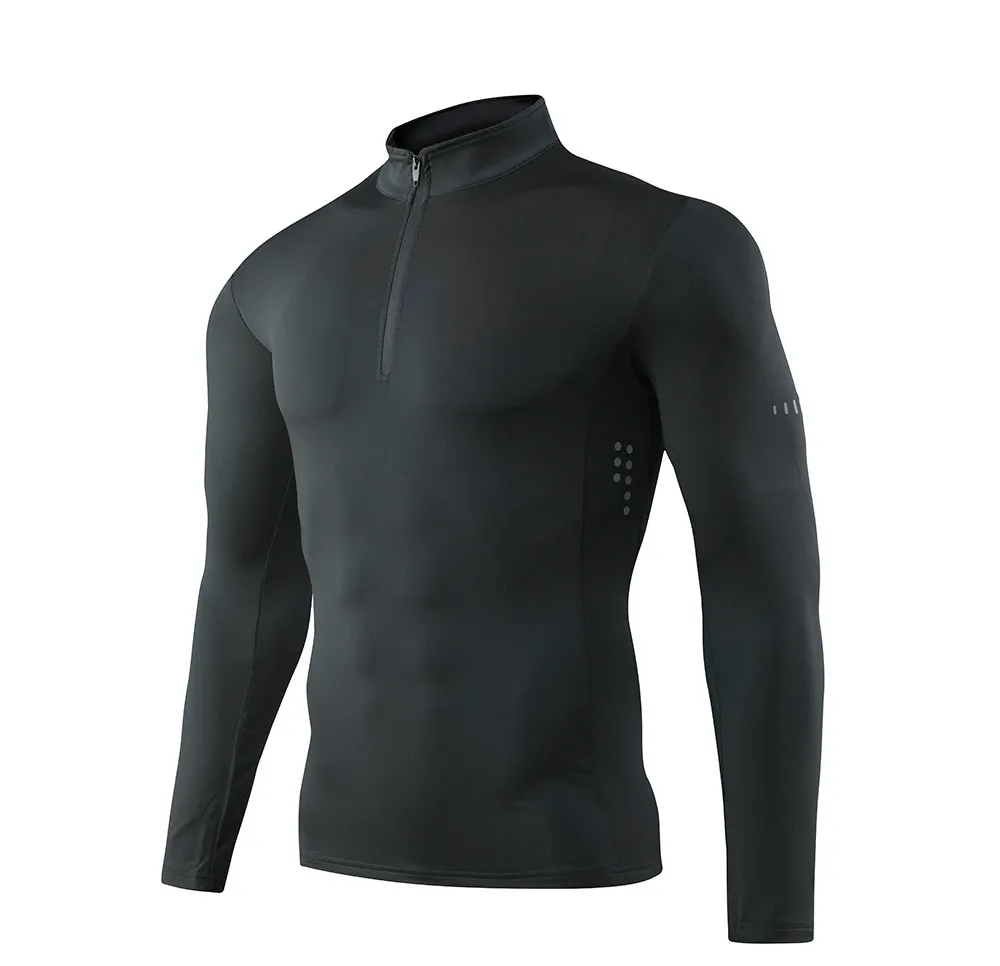 Компрессионная футболка для мужчин, Рашгард с длинными рукавами, футболка для бега для спортзала и футбола, плотная спортивная одежда, мужская футболка на молнии