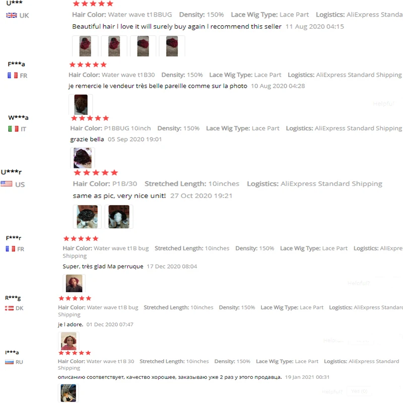 Парик из человеческих волос с глубокими волнами хорошего качества; Химически не обрабатывается; Здоровый, полный и толстый; Может быть окрашен и отбелен, доступны шесть различных цветов