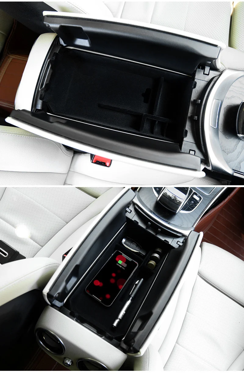 Для Mercedes Benz new C GLC Class C200 C180 GLC250 W205 мобильный телефон Беспроводная зарядка подлокотник коробка для хранения всякой всячины упаковочная коробка