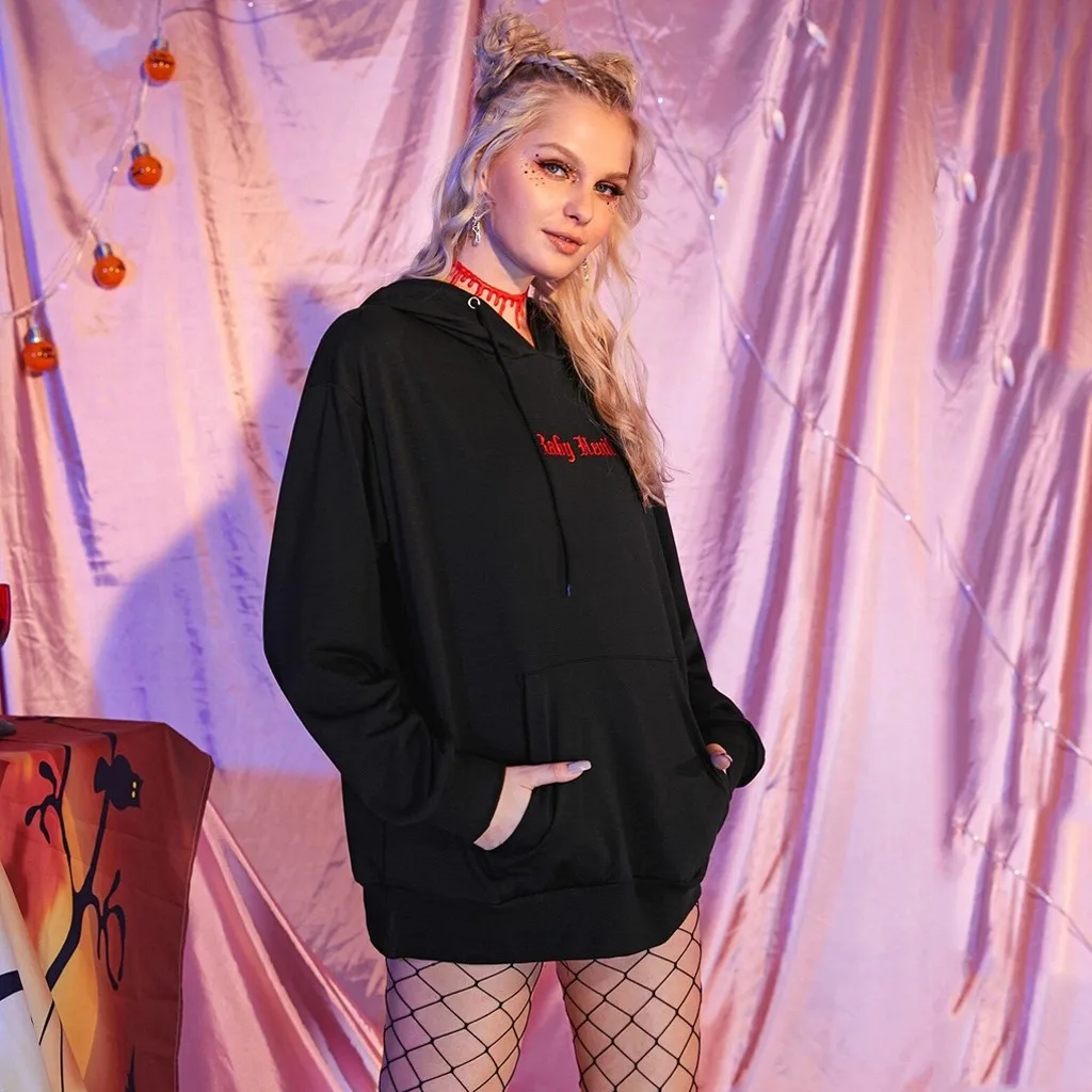 Женская Повседневная Толстовка с контрастным карманом и капюшоном на Хэллоуин