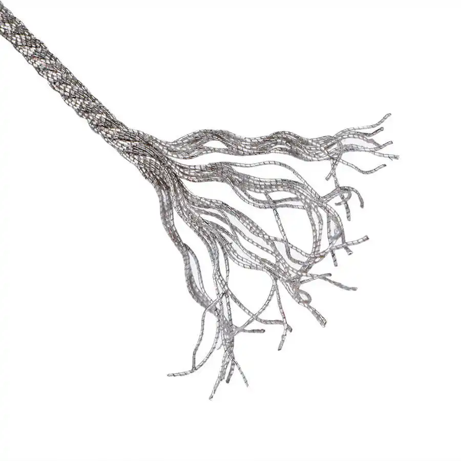 Материал скрученной серебристой проволоки, прочный и устойчивый.