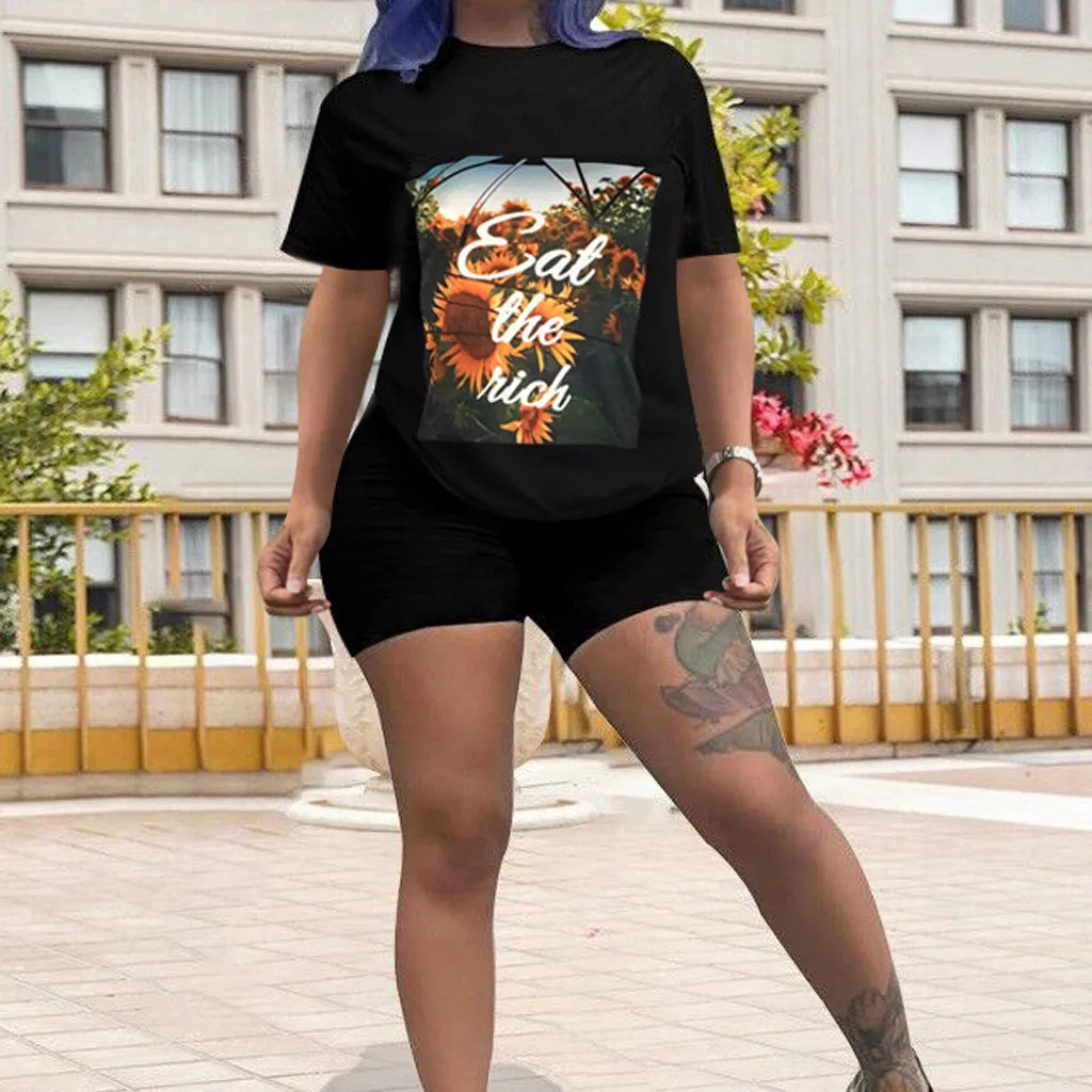 Женские повседневные летние шорты с коротким рукавом и принтом, домашний спортивный костюм из 2 предметов