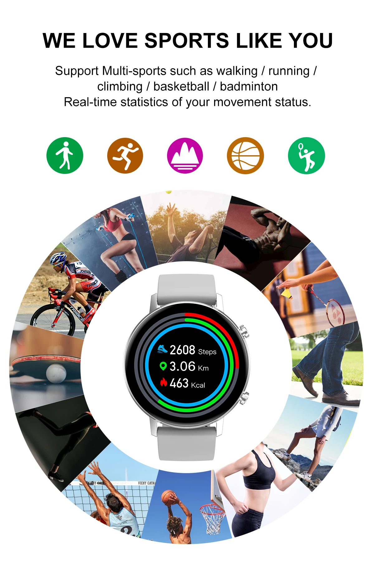 Шагомер, калории, расстояние, спортивный режим (ходьба, бег, туризм, бадминтон, Баскетбол)