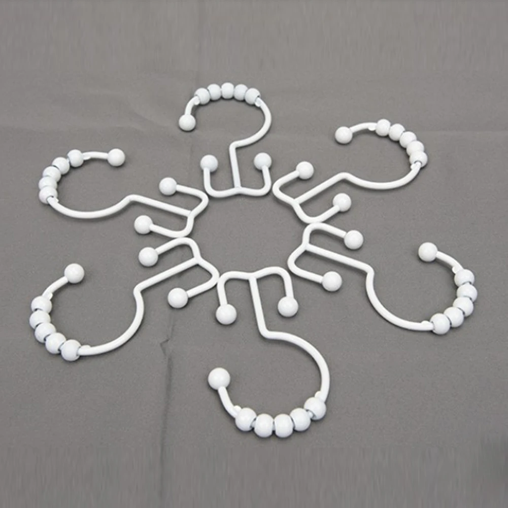 3.Плавное скольжение:Наслаждайтесь легким скольжением по стержню для душа. Пять роликовых шариков в верхней части каждого крючка позволяют более плавно скользить, пока вы тяните штору или подкладку через стержень.
